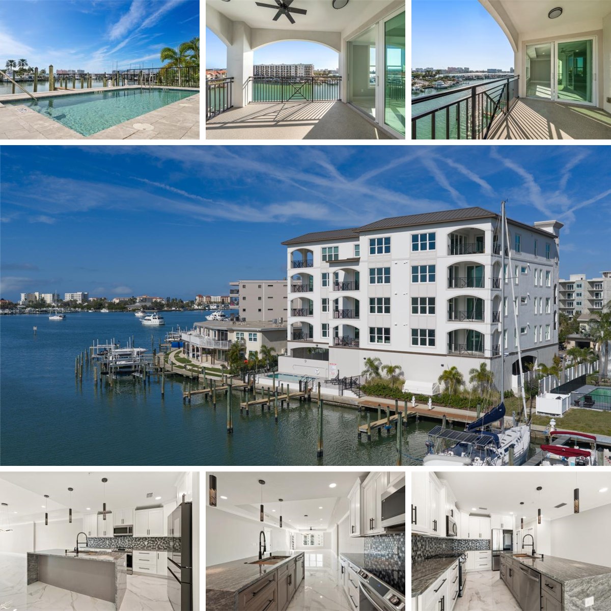Introducing La Brisa Del Mar, a boutique luxury condominium in Clearwater’s highly sought-after Island Estates, offering refined coastal modern living along the Intracoastal Waterway with expansive water views. This move-in-ready, new construction residence showcases stunning views from expansive terraces designed for seamless indoor-outdoor living. The open-concept interior features elegant tile flooring and a beautifully appointed kitchen with quartzite countertops, a generous island, and stainless steel appliances, anchoring the main living space with modern sophistication. Offering three bedrooms and two baths, the primary suite is a tranquil retreat with a spacious walk-in closet and a spa-inspired ensuite featuring double vanities, a private water closet, a walk-in shower with a rain-style shower head, and a corner soaking tub. Built on 110 pilings and featuring PGT impact resistant hurricane windows, this quality new construction offers exceptional peace of mind. Each residence also includes an under-building assigned parking space plus one additional unassigned space. Residents enjoy a waterfront pool and the rare opportunity to purchase a deep water Intracoastal boat slip. Ideally located just minutes from shopping, dining, and world-famous Clearwater Beach, La Brisa Del Mar delivers private, polished waterfront living in an intimate setting.